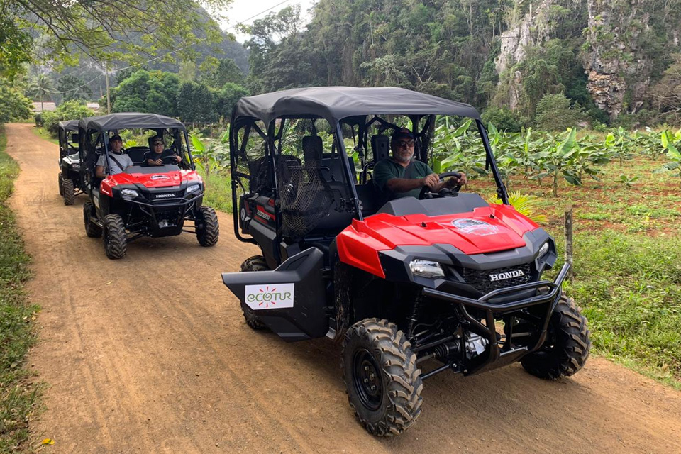 Le ofrecemos una experiencia única que quedará grabada para siempre en su memoria. Dos recorridos incomparables por la hermosa y entrañable Viñales, a bordo de vehículos Honda 4x4. Una posibilidad sin igual de emprender una aventura por el corazón de Cuba, descubriendo lugares mágicos más allá del turismo convencional.
